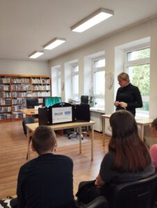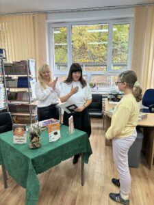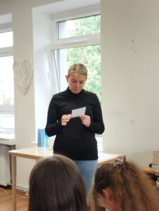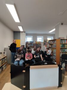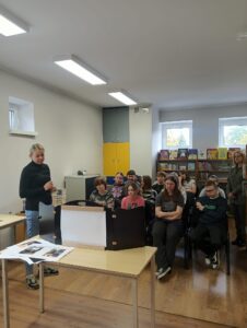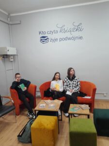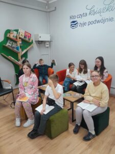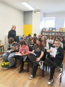 W środowy poranek, 22 października uczniowie klasy VII b skorzystali z zaproszenia Pań : Izabeli i Samanty z Miejskiej Biblioteki Publicznej na osiedlu Parkowym i wzięli udział w spotkaniu autorskim z poetką Panią Agnieszką Pertek. Autorka ciekawie opowiadała o swojej twórczości, inspiracjach, dzieciństwie, młodości oraz drodze prowadzącej do sukcesu. Uczniowie mieli okazję wziąć udział w warsztacie, podczas którego mieli za zadanie napisać o swoich planach / marzeniach. Chętni uczniowie podzielili się, opowiadając o swoich „drabinach do sukcesu” . Pani Agnieszka przeczytała kilka swoich wierszy. Napisała też wiersz specjalnie dla klasy VIIb, który przekazała uczniom. Była to niezwykła uczta dla ducha. Uczniowie przekazali na ręce poetki symboliczne kwiaty oraz podziękowanie za inspirujące spotkanie. Dziękujemy za możliwość uczestniczenia w spotkaniu. Marlena Dubiał