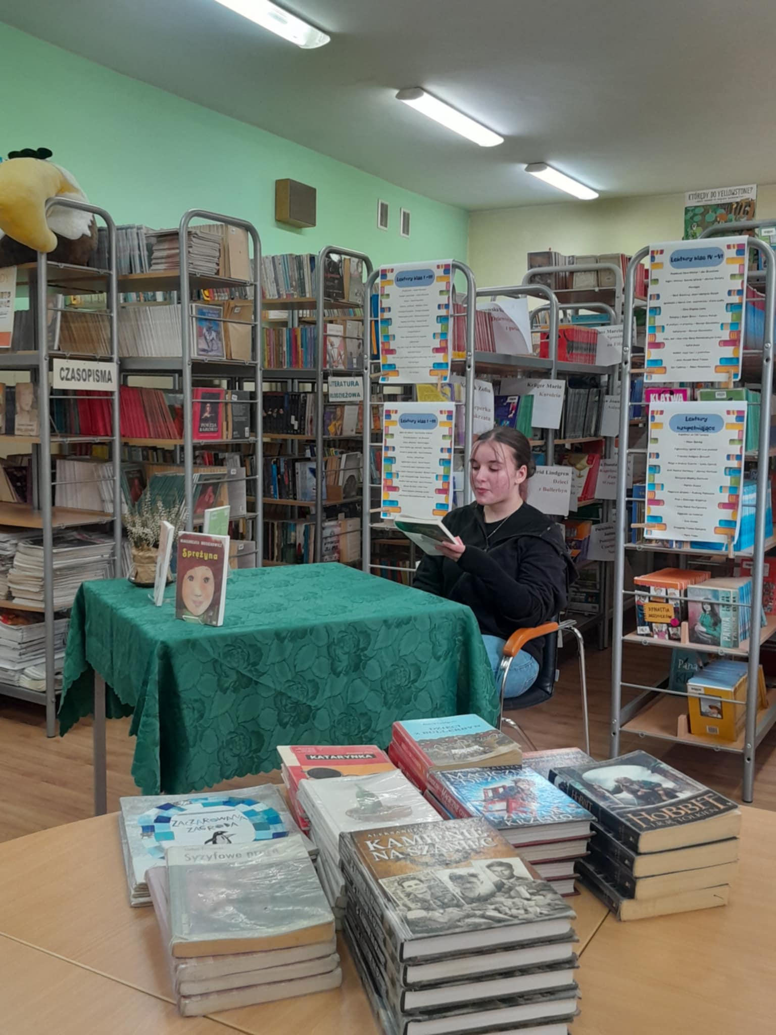 Piękne czytanie w szkolnej bibliotece