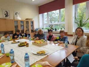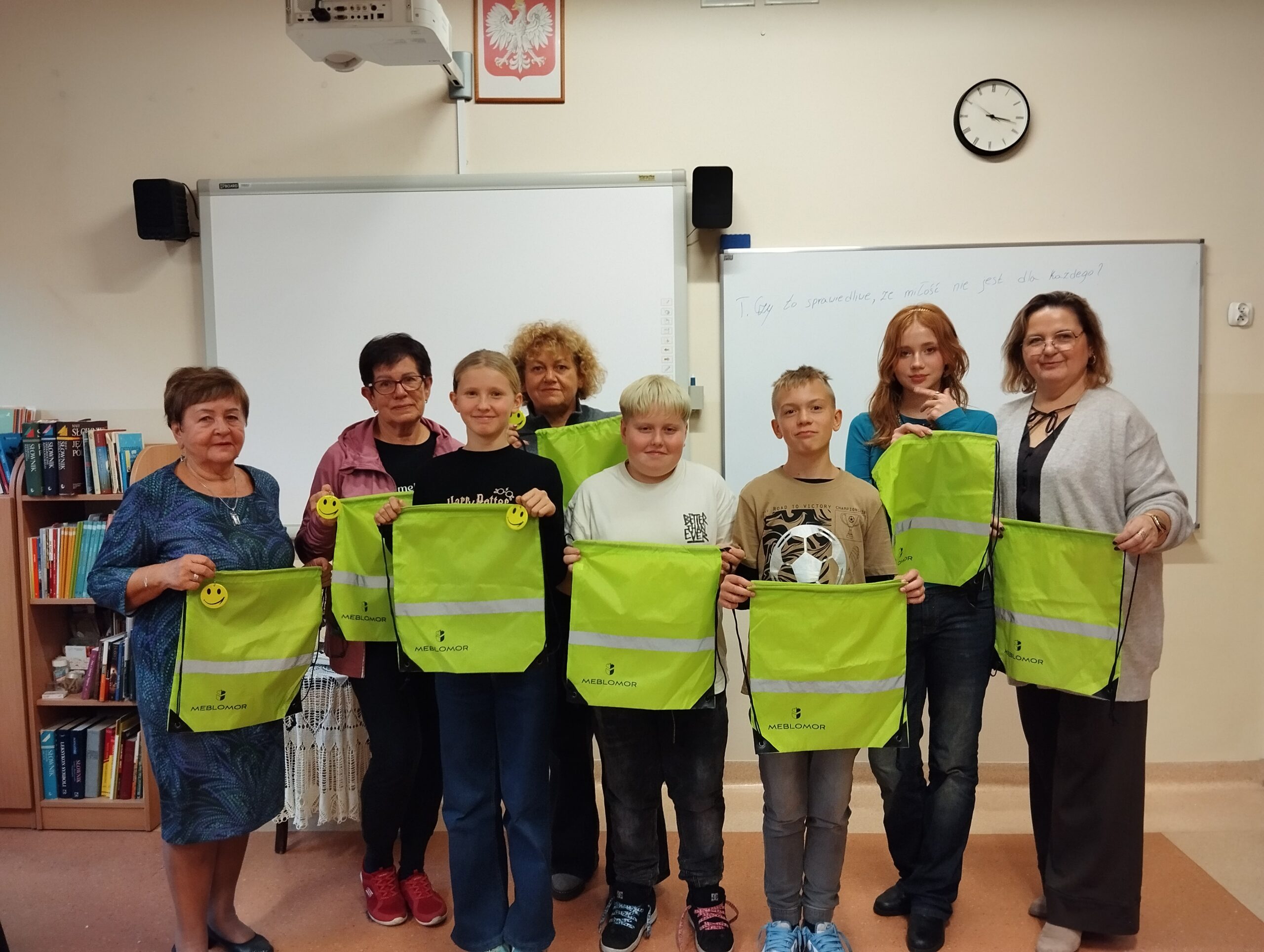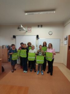 Październikowe popołudnie, 28 października 2025 r. było długo wyczekiwanym spotkaniem dziennikarzy Koła Dziennikarskiego działającego w Szkole Podstawowej nr 2 im. Janusza Korczaka w Czarnkowie, z członkiniami Uniwersytetu Trzeciego Wieku w naszym Czarnkowie. Uczniowie spotkali się z seniorami, aby przeprowadzić wywiad, w związku z ogólnopolską akcją ” Odblaskowa szkoła 2025″ , w której bierze udział nasza szkoła. Uczniowie zadawali pytania dotyczące tego, jak było kiedyś, jeśli chodzi o stosowanie elementów odblaskowych, działań na rzecz bezpieczeństwa w ruchu drogowym, wyposażeniu w elementy odblaskowe dawniej i dziś. Członkinie Uniwersytetu Trzeciego Wieku w bardzo ciekawy i przystępny sposób opowiadały o bezpieczeństwie kiedyś i dziś. Zwróciły uwagę na większą ilość rowerów, a także samochodów na ulicach miast i wsi. Podczas rozmowy z seniorami uczniowie promowali pozytywne postawy poprzez używanie i stosowanie elementów odblaskowych na plecakach, rowerach, ubraniach wierzchnich, szczególnie w drodze do i ze szkoły. Zwrócili uwagę na to, jak ważne jest popularyzowanie przepisów i zasad ruchu drogowego oraz kształtowanie partnerskich zachowań wobec innych uczestników ruchu drogowego. Podkreślali , że promowanie takich działań na rzecz bezpieczeństwa w ruchu drogowych należy promować już od najmłodszych lat. Spotkanie upłynęło w miłej atmosferze. Na koniec spotkania o ” Odblaskowej szkole 2025″ uczniowie naszej „Dwójki” wręczyli Paniom z Uniwersytetu Trzeciego Wieku elementy odblaskowe ( worki i zawieszki, które od razu zostały przypięte do plecaków i toreb). Dziękujemy za cenne informacje Paniom z Uniwersytetu Trzeciego Wieku. Liczymy na kolejne spotkanie! Marlena Dubiał- opiekun Koła Dziennikarskiego